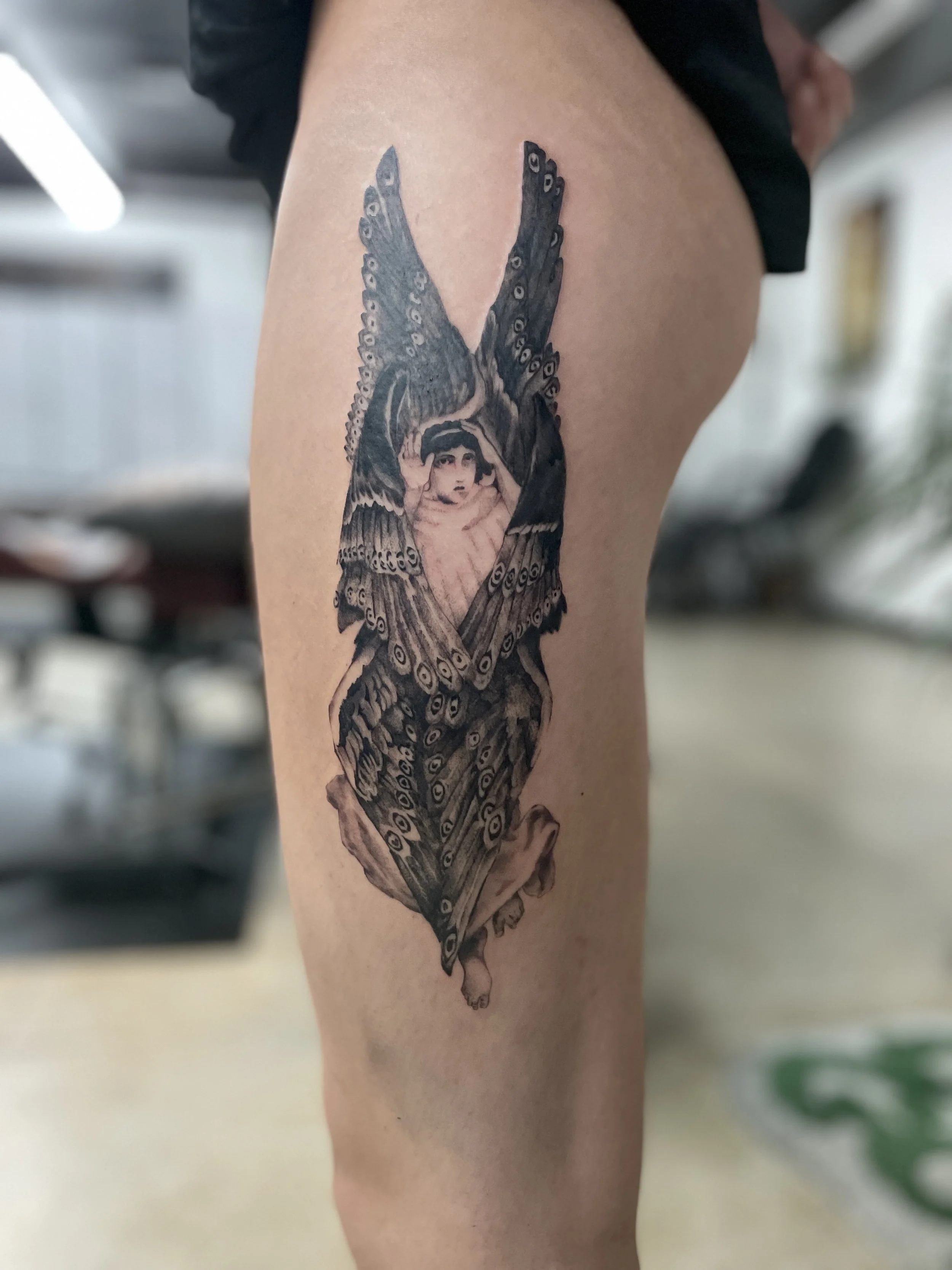 Keni, known as Skyrat on Instagram, specializes in black and grey illustrative while exploring Neo-traditional and cartoon styles. But not “pigeon hole-ing” himself to just those styles. He is very capable to a wide range and is always willing to work with the client on their specific vision. Art has shaped his identity, leading him from a BS in Computer Animation to his true passion—tattooing. After several years in the industry while training under his mentor in Seattle, he officially began tattooing solo in 2021. Now in Metro Detroit, he's eager to create stunning pieces with new clients. Check out his art and say hi on Instagram @skyrat_tats.